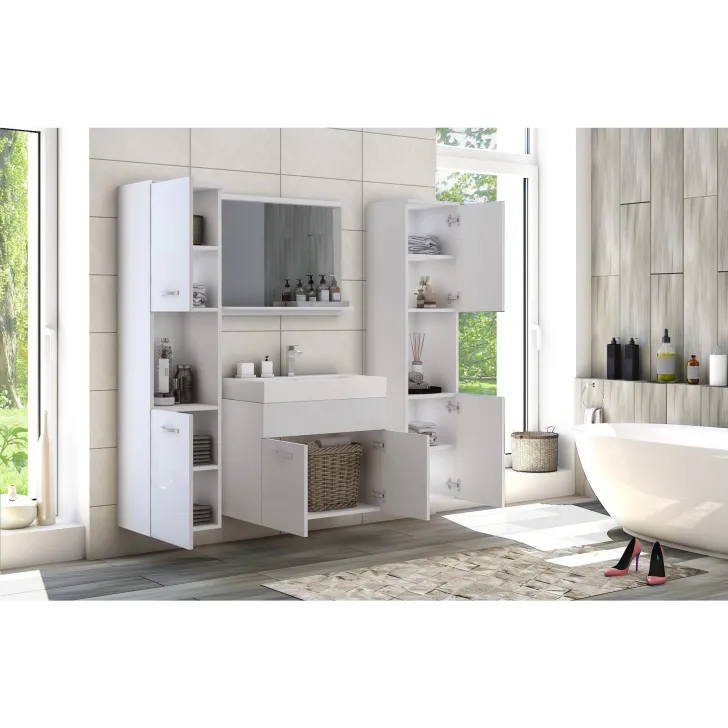 Das Set weißer Badezimmermöbel Montreal XL besticht durch ein modernes, minimalistisches Design, das perfekt den aktuellen Trends des zeitgenössischen Designs entspricht. Weiße Badezimmermöbel sind der Inbegriff von Eleganz und Stil – ideal für die Gestaltung eines modischen und hellen Badezimmers. Besonders hervorzuheben ist der dezente Glanz, der durch eine transparente PET-Beschichtung auf den Korpussen erzielt wird.