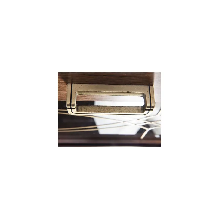 Die Vitrine verfügt über eine verglaste Tür, die nicht nur den Inhalt ansprechend präsentiert, sondern den Raum auch optisch vergrößert – perfekt für kompaktere Zimmer. Zwei geräumige Schubladen bieten zusätzlichen Stauraum für persönliche Gegenstände. Sowohl die Tür als auch die Schubladen sind mit Metallgriffen ausgestattet, die dem Möbelstück einen modernen Charakter verleihen.