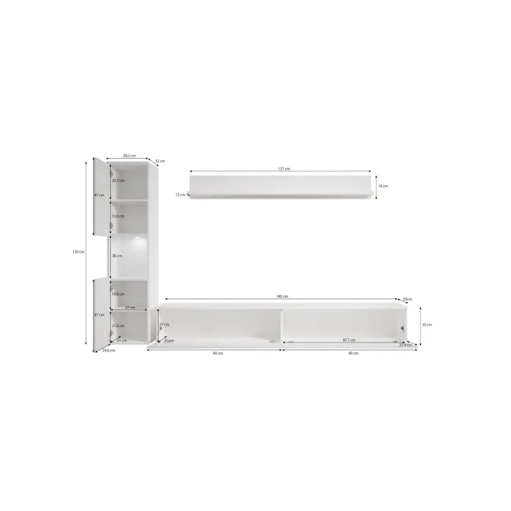 Dieses modulare Wohnzimmermöbel ist äußerst funktional und ermöglicht es, deine Lieblingsfilme, Bücher, Zeitschriften zu verstauen und gleichzeitig diskret den Decoder, Konsolen oder Audio-Geräte zu verstecken. Die Herstellung aus hochwertiger, 15 mm dick laminiertem Holz, das mit ABS-Kanten versehen ist, sorgt für Langlebigkeit und ein ästhetisches Aussehen über viele Jahre.