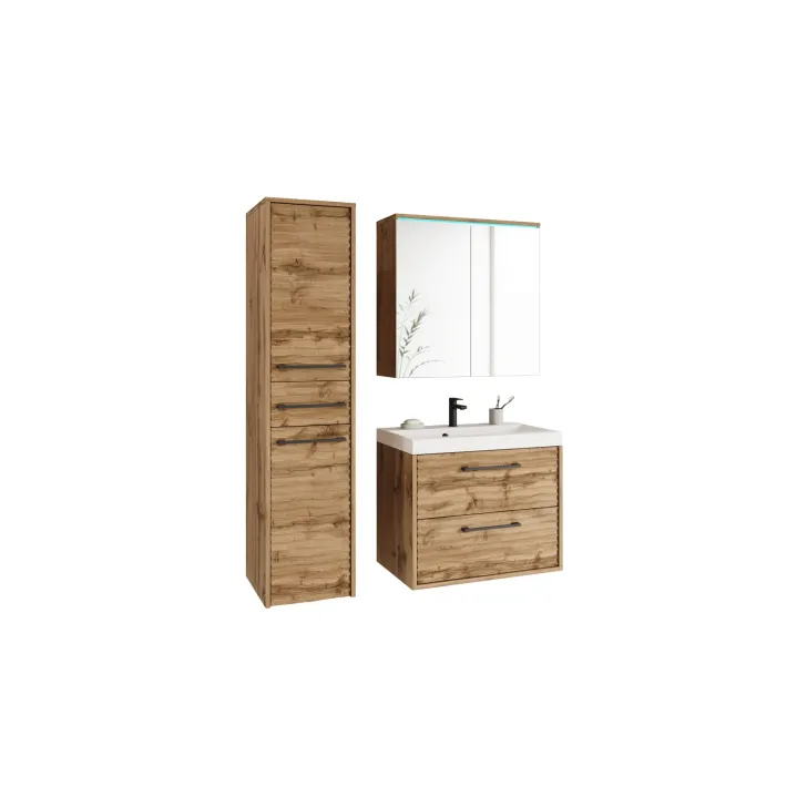 Es sind zwei Farbvarianten erhältlich: Schwarz, Eiche Wotan und Kaschmir – so können Sie die Möbel perfekt an das Design Ihres Badezimmers anpassen. Zusätzlich sorgt die optionale LED-Beleuchtung für ein modernes und stilvolles Ambiente.