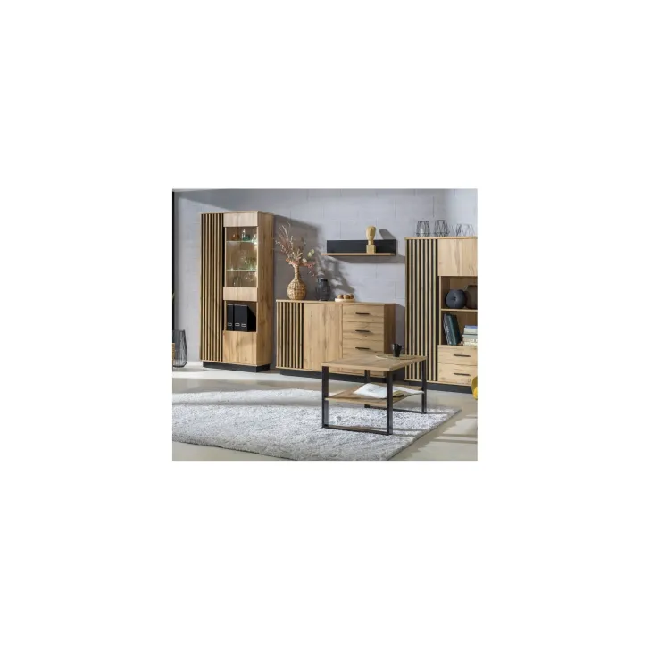 Die elegante zweitürige Kommode Lamia in Eiche Wotan / Schwarz Matt ist ein meisterhaft gestaltetes Möbelstück, das moderne Ästhetik und Funktionalität vereint. Ihr stilvolles Design resultiert aus der perfekten Kombination von MDF-Zierleisten und laminierten Platten. Die raffinierten Zierleisten machen die Kommode LAMIA zu einem ausdrucksstarken Dekorelement, das den Charakter jedes Raumes betont.