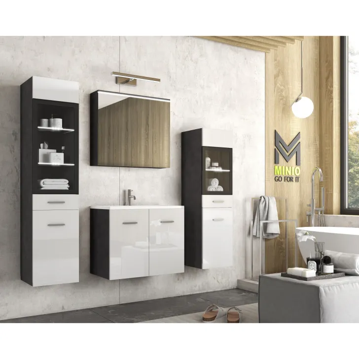 Darüber hinaus sind die Badezimmermöbel „MARIT 2“ in verschiedenen Farben erhältlich, darunter Weiß, Schwarz, Bodega-Kiefer, Eiche Wotan/Weiß Hochglanz und viele weitere. Sie können auch eine LED-Beleuchtungsoption wählen, die den Charme und die Eleganz Ihres Badezimmers zusätzlich betont.