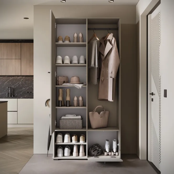 - Offene Fächer und praktischer Klapp-Schuhschrank