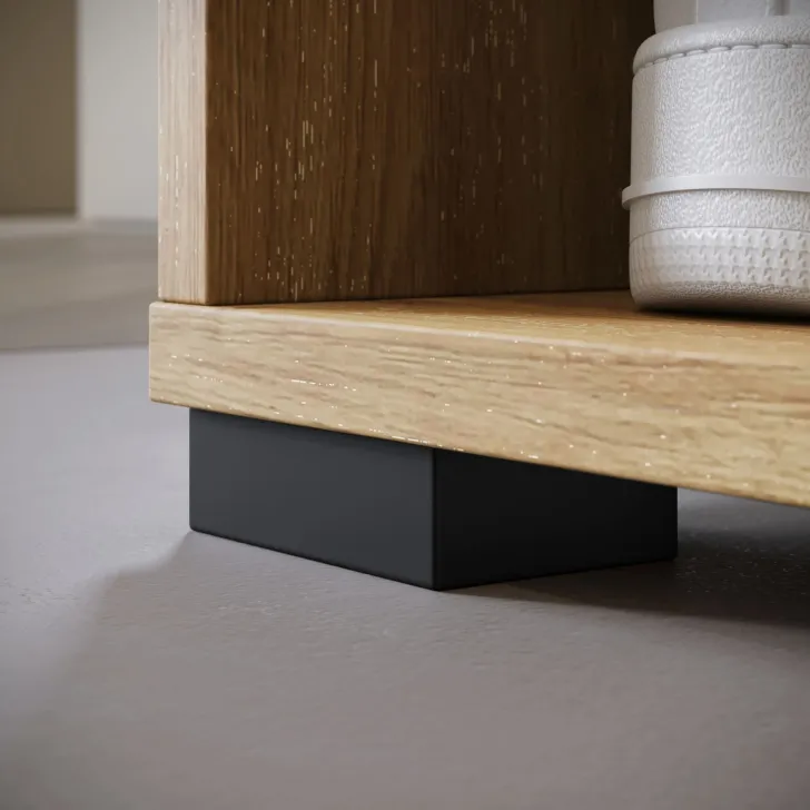 Auch technisch überzeugt die Garderobe DAFNI: Sie ist aus hochwertiger 15 mm starker laminierten Möbelplatte gefertigt und dadurch besonders stabil und langlebig. Die Kanten sind mit robustem ABS versehen, während die Griffe aus widerstandsfähigem Kunststoff bestehen. Zusätzlich lässt sich die Höhe der Einlegeböden anpassen und der Schrank kann wahlweise links oder rechts montiert werden.