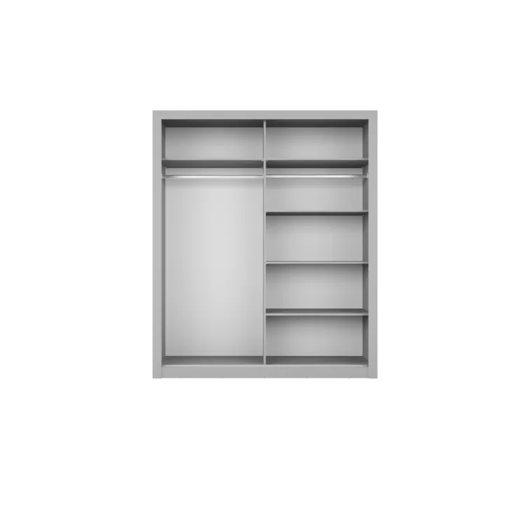 Der Kleiderschrank ERTA 3 zeichnet sich durch ein minimalistisches Design und eine universelle Farbgebung aus, wodurch er sich harmonisch in jedes Interieur einfügt – egal ob modern oder klassisch. Ausgestattet mit zwei Schiebetüren bietet er nicht nur bequemen Zugriff auf das Innere, sondern spart auch Platz im Raum.