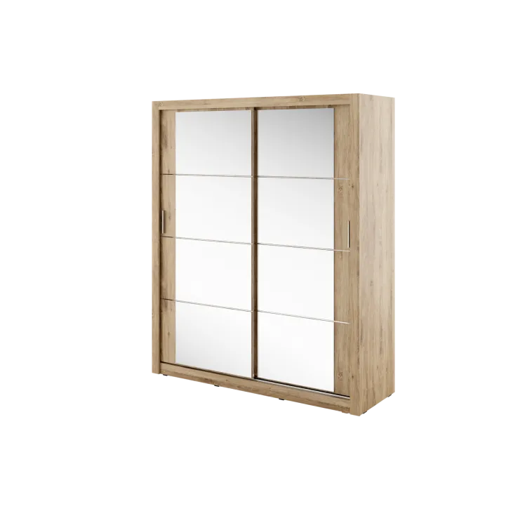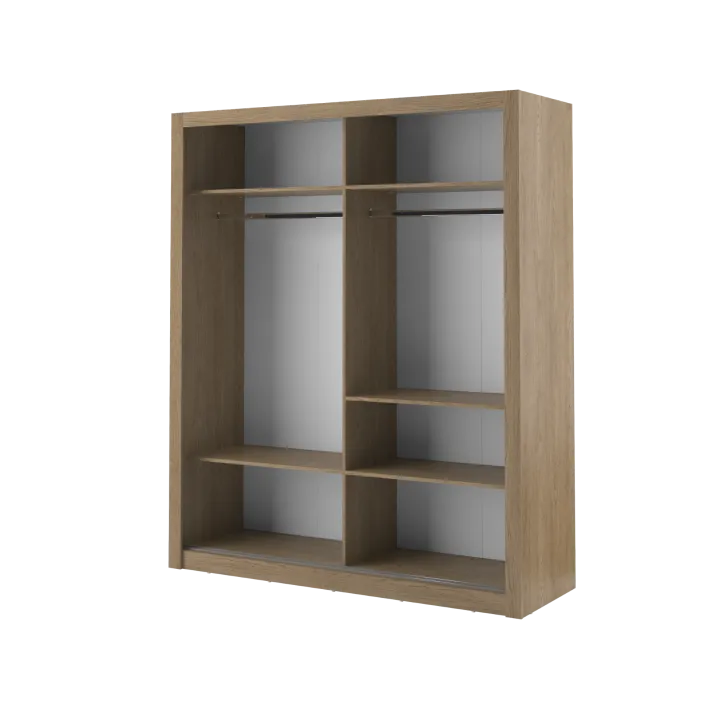 Wir haben darauf geachtet, Funktionalität mit ansprechender Ästhetik zu verbinden, um ein wohnliches und organisiertes Ambiente zu schaffen. Deshalb verfügt der Schrank ERTA 3 über einen integrierten Spiegel an der Tür – er bringt mehr Licht in den Raum, erleichtert die tägliche Kleiderwahl und spart wertvolle Zeit vor dem Verlassen des Hauses.