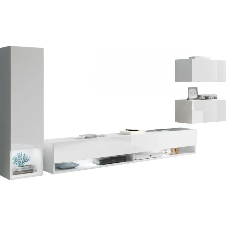 Wenn Sie auf der Suche nach einem modernen, funktionalen Möbelstück für Ihr Wohnzimmer sind, haben wir die ideale Lösung für Sie. Wir präsentieren die hängende Wohnwand AMY I. Dieses moderne Möbelstück wird nicht nur das Aussehen Ihres Wohnzimmers dynamisch verändern, sondern bietet auch viele Konfigurations- und Aufbewahrungsmöglichkeiten.