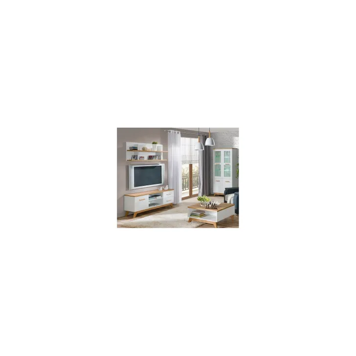Die ideale Möglichkeit, Wandfläche effizient zu nutzen – das bietet unser hängendes Regal aus der Kollektion Seven. Dank seiner großzügigen Ablagefläche finden hier nicht nur Bücher, sondern auch Erinnerungsstücke, Fotos oder Pflanzen ihren Platz. Es macht sich hervorragend sowohl im Jugendzimmer als auch im Wohnzimmer oder Büro, was es zu einer vielseitigen Lösung für viele Räume macht. Die klassische Farbkombination – Eiche Nash, Weiß und Andersen-Kiefer – fügt sich sowohl in helle als auch in dunklere Raumgestaltungen harmonisch ein.
