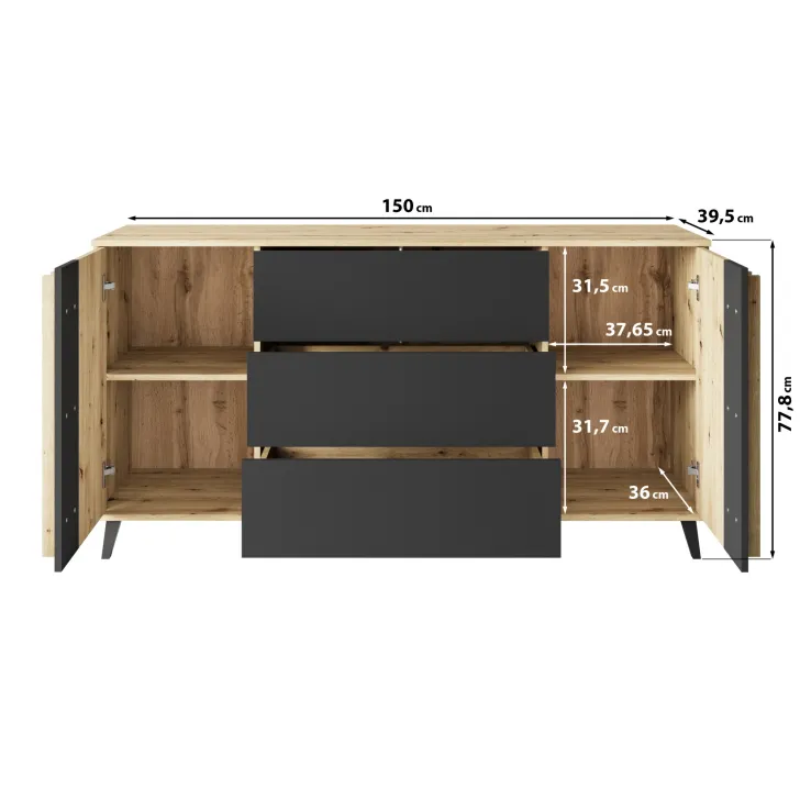 Maße der Kommode HURON 150 cm