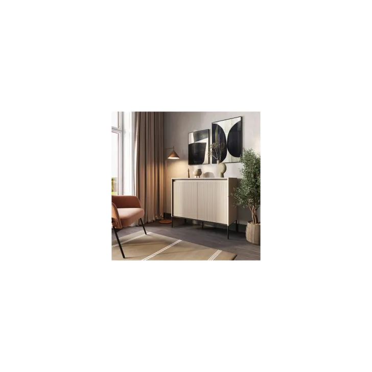 Die kleine Kommode TREVIOLO ist in fünf attraktiven Farbvarianten erhältlich: Sandbeige/Schwarz mit halbkreisförmiger Fräsung, Weiß/Schwarz und Grau/Schwarz mit Halbkreisfräsung sowie Schwarz und Artisan-Eiche/Schwarz mit gerader Fräsung. Diese Auswahl ermöglicht es Ihnen, die Kommode perfekt an die Ästhetik Ihres Raumes anzupassen.