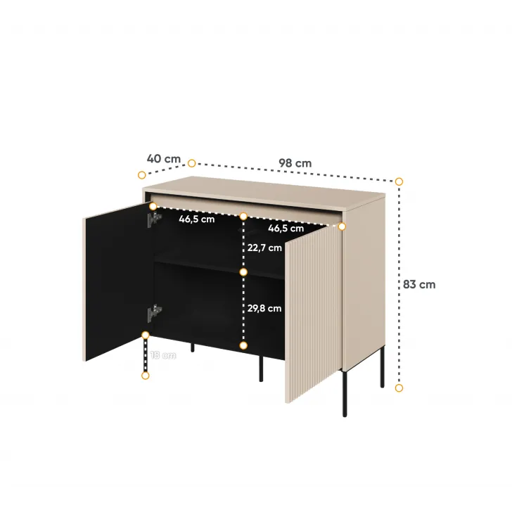Wir laden Sie ein, unsere kleine Kommode TREVIOLO kennenzulernen, die sich perfekt in jedes Interieur einfügt. Ob Sie zusätzlichen Stauraum für Ihr Wohnzimmer oder Schlafzimmer suchen – diese Kommode erfüllt Ihre Erwartungen. Dank ihrer kompakten Abmessungen ist sie die ideale Wahl für kleinere Räume und verleiht ihnen gleichzeitig einen einzigartigen Charme und Stil.