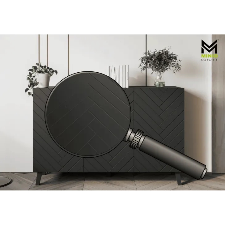 Zu den Hauptmerkmalen der Kommode "LOKET" 120 cm mit MDF-Front und 3D-Muster zählen: