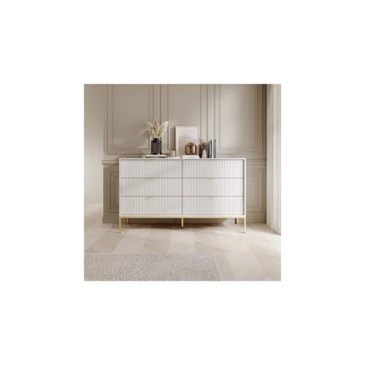 Diese Kommode ist die ideale Wahl für alle, die ihre Räume mit einer Vision von Modernität und Funktionalität im Einklang mit den besten Einrichtungstrends verwandeln möchten. Zögern Sie nicht und bestellen Sie noch heute Ihre Kommode mit Schubladen "NOVA" auf Metallbeinen!