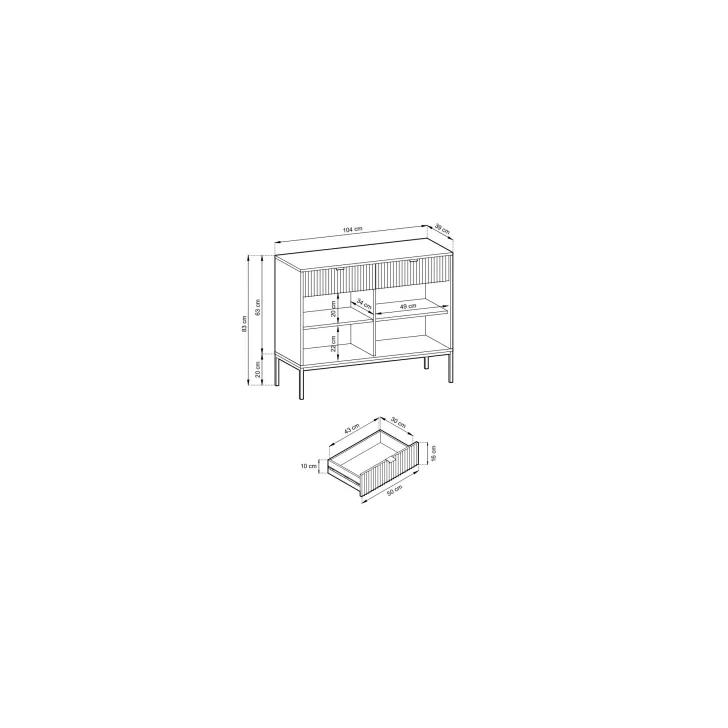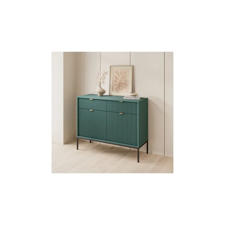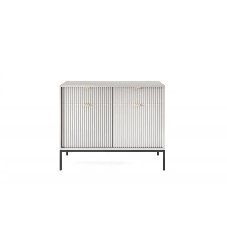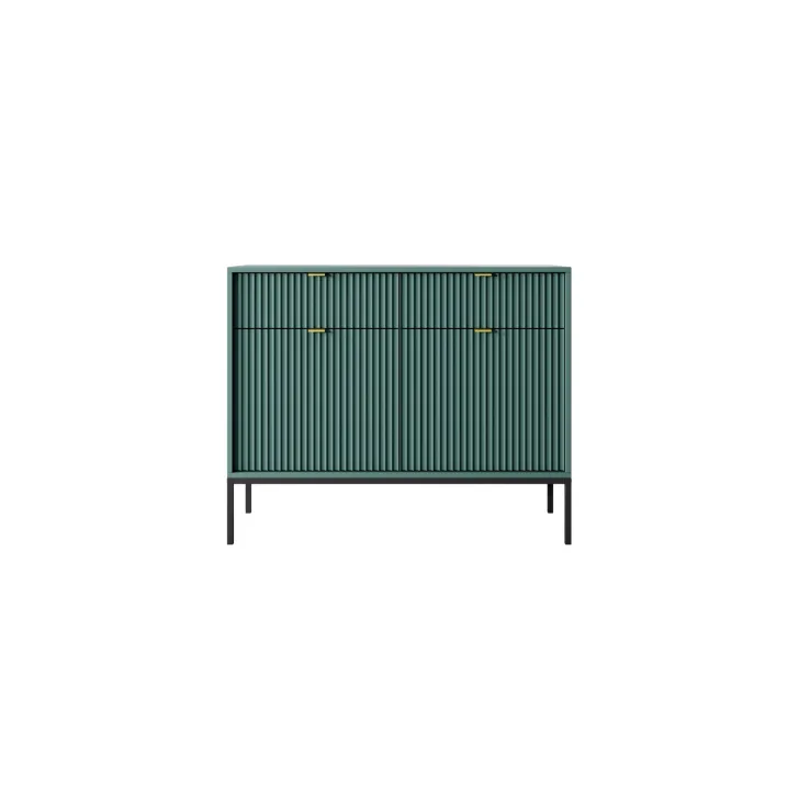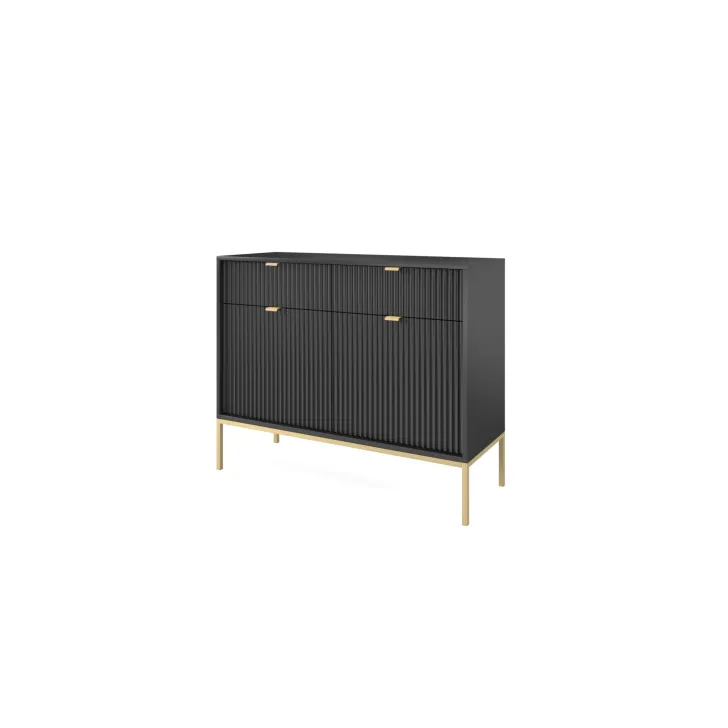 Die Kommode „NOVA“ wurde mit Blick auf höchste Ansprüche an Langlebigkeit und Ästhetik entwickelt. Die Herstellung aus robuster, laminierter Platte sorgt für eine besonders kratzfeste und widerstandsfähige Oberfläche. Zusätzlich sind die seitlichen Kanten mit ABS-Kantenband versehen, was eine langfristige Nutzung ohne sichtbare Gebrauchsspuren garantiert. Die stabilen Metallbeine verleihen der Kommode moderne Eleganz und sichern zugleich festen Stand.