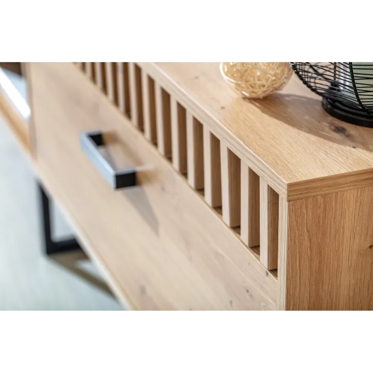 Betonen Sie den besonderen Charakter Ihres Wohnzimmers mit dem TV-Schrank MELLE – einer perfekten Kombination aus moderner Eleganz und Funktionalität. Mit diesem einzigartigen Möbelstück bringen Sie Wärme und Stil in Ihr Zuhause und schaffen ein harmonisches Ambiente, das sich in jedes Interieur einfügt.