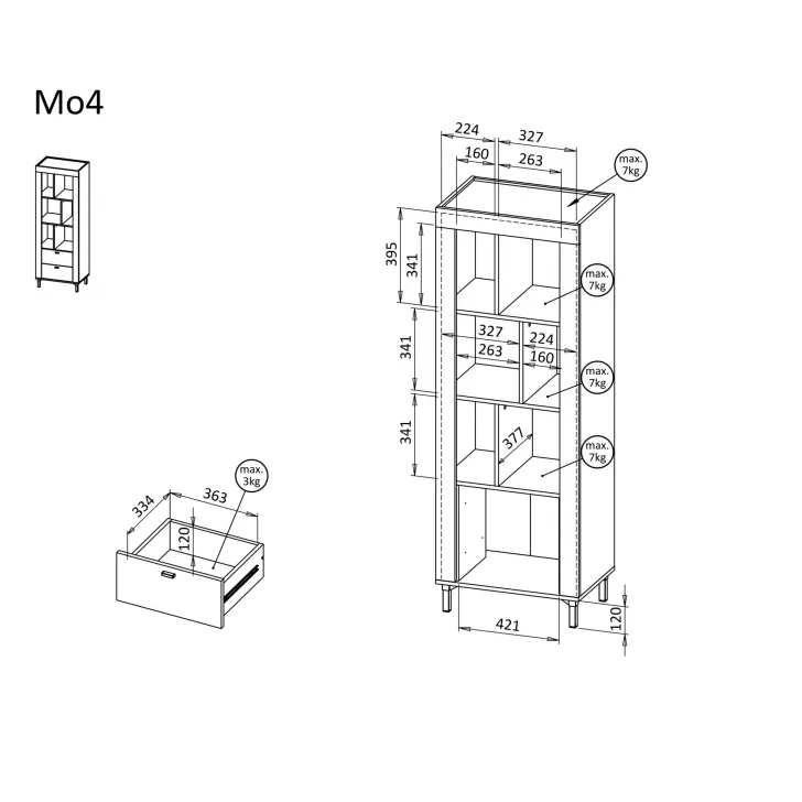 Abmessungen Regal „ASSO 4“ mit Schubladen: