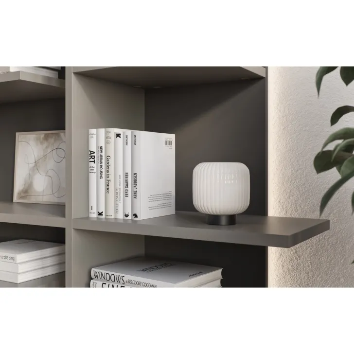 Das Regal TIFT 1 mit LED-Beleuchtung kann hervorragend mit anderen Möbelstücken der Serie kombiniert werden, um ein harmonisches Gesamtbild zu schaffen.