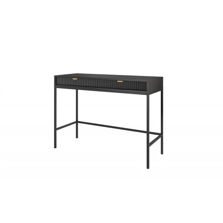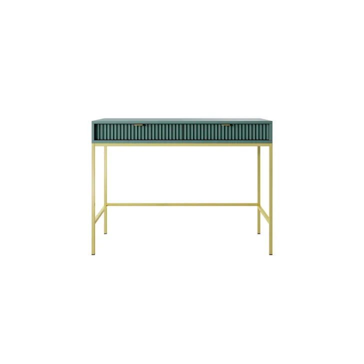 Entdecken Sie den faszinierenden Schminktisch NOVA – eine perfekte Kombination aus Stil, Funktionalität und Langlebigkeit. Dieses moderne Möbelstück lässt sich mühelos von einem stilvollen Schminktisch in einen funktionalen Schreibtisch verwandeln, was es zur idealen Wahl für Schlafzimmer oder Büro macht. Es handelt sich um ein universelles Möbelstück, das sich Ihrem Geschmack und Ihren Bedürfnissen anpassen lässt. Dank der Möglichkeit, Griffe und Beinfarben individuell zu gestalten, können Sie mit dem Schminktisch NOVA Ihren persönlichen Stil zum Ausdruck bringen. Wählen Sie aus fünf Farben (Weiß, Grau, Schwarz, Grün), zwei Beinfarben (Schwarz, Gold) und zwei Griffvarianten (Gold, Schwarz). Für die Herstellung des Schminktischs NOVA wurden ausschließlich hochwertige Materialien verwendet: