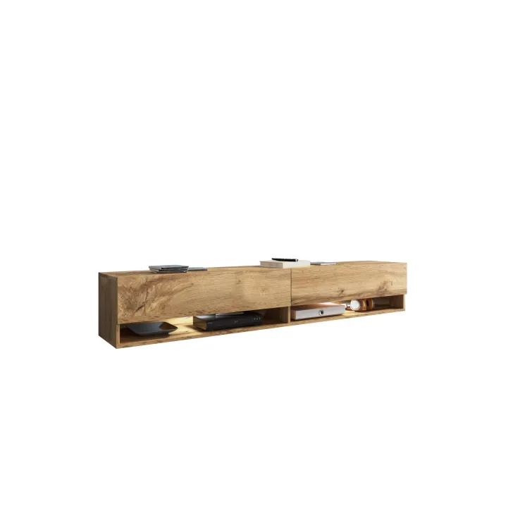Hier kommt der TV-Schrank "ANNE", dessen modernes und stilvolles Erscheinungsbild frischen Wind in Ihr Interieur bringt. Die Möglichkeit, ihn an der Wand zu montieren oder auf Füßen zu platzieren – ganz nach Ihren individuellen Anforderungen – verleiht ihm einen zeitgemäßen und einzigartigen Charakter.